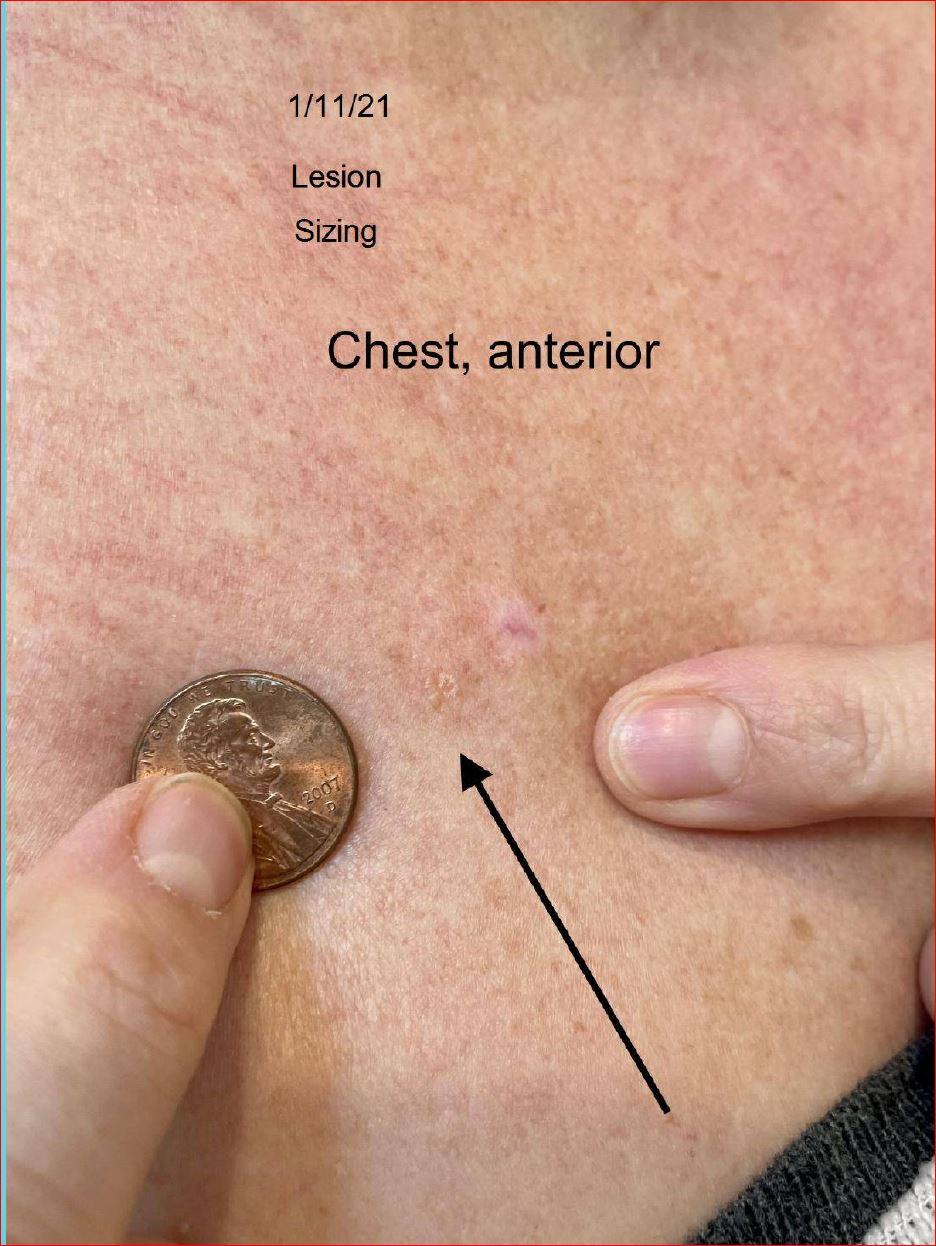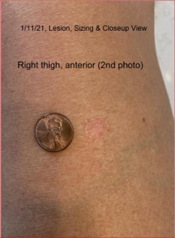 - Sizing Mechanism: A penny is used for scale, placed directly next to the target lesion. (Note: A ruler, as preferred in Fig. 1, is recommended for easier measurement.)